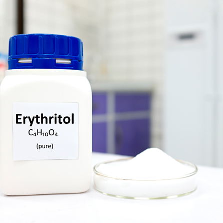 A sugar alcohol (0.2kcal/g), used as a low-calorie sweetener in sugar-free foods (candy, baked goods). It has a cooling taste, minimal impact on blood sugar, and low gastrointestinal side effects, appealing to low-carb diets.